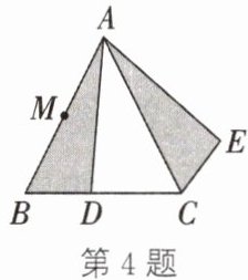 4. 如图,将△ABD旋转后到达△ACE的位置。
