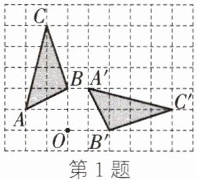1. 在如图所示的方格纸中,△ABC的顶点都在格点上,将△ABC绕点O按顺时针方向旋转得到△A′B′C′,各顶点仍在格点上,则其旋转角的度数是(