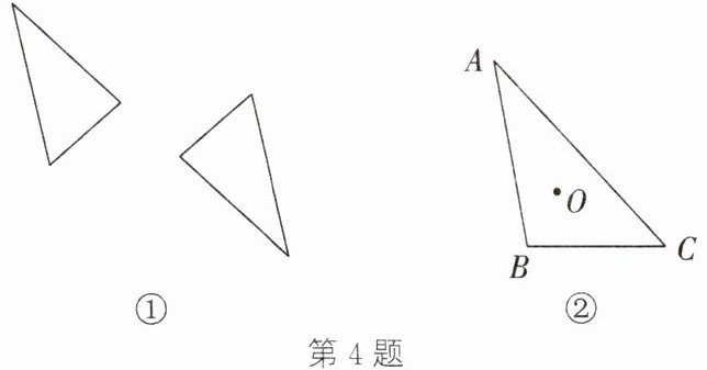 4. (1) 如图①,点O 即为所求 (2) 如图②,△A'B'C' 即为所求