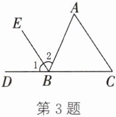 3. 如图,D,B,C 三点在同一条直线上,BE // AC,∠2 = ∠C. 求证:BE 平分 ∠ABD. 将以下证明过程补充完整.