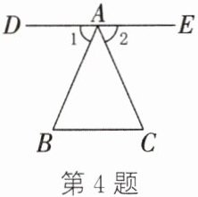 4. 如图,点 A 在直线 DE 上,有下列三个条件:① DE // BC;② ∠1 = ∠2;③ ∠B = ∠C.