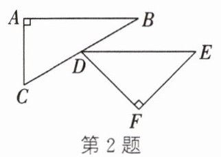 2. 将一副三角尺按如图所示的位置放置,其中 AB // DE,则 ∠CDF 的度数为