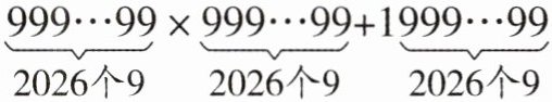 )个连续的 0。$\underbrace{999··· 99}_{2026个9}× \underbrace{999··· 99}_{2026个9}+\underbrace{1999··· 99}_{2026个9}$
