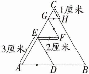 $AD = 2$厘米,$DE = 1$厘米,$EF = 2$厘米,$FG = 1$厘米,$GH = 1$厘米,$HC = 1$厘米,