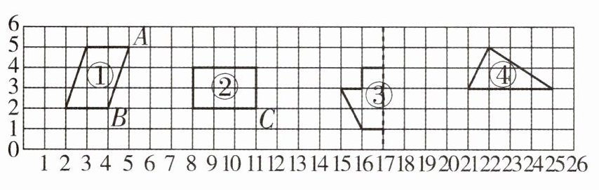 提示:有两组对边分别平行的四边形叫作平行四边形,据此可知要添顶点的位置用数对表示是(24,1)或(26,5)或(18,5),再画出这个平行四边形。