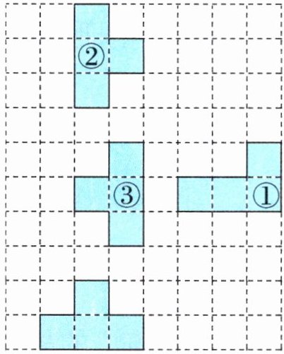 提示:将图①向下平移 4 格,下面的 3 个小正方形到最下面一行;将图②先向左平移 2 格,再向下平移 7 格,最下面的 1 个小正方形到最下面一行;将图③先向右平移 1 格,再向下平移 3 格,最下面的 1 个小正方形到最下面一行,此时可以将最下面一行填满并消除。
