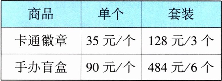 3. 李叔叔在杭州游玩,打算买 18 个卡通徽章和 12 个手办盲盒,最少需要花多少钱?