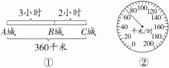 1. 一辆车从$A$城经$B$城开往$C$城(如图①)。这辆车从$A$城到$B$城的平均速度如图②,这辆车从$B$城到$C$城的平均速度是多少?