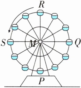 (1)从登舱点$P$到点$Q$,摩天轮绕点$M$(