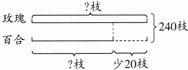 答案:2. 玫瑰:$(240 + 20)÷2 = 130$(枝)