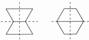 例1 用下面的图形摆成只有1条对称轴的图形,怎样摆?如果摆成只有2条对称轴的图形,怎样摆?画出示意图。