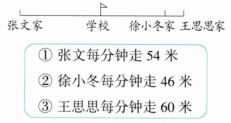 张文、徐小冬和王思思三位同学同时从家出发,20 分钟后同时到达学校。已知