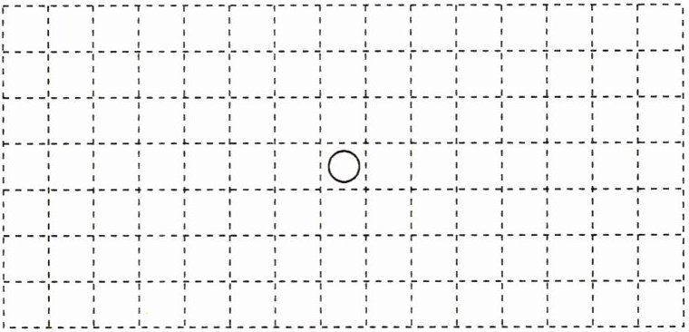 7. 圆先向上平移 $ 3 $ 格,再向左平移 $ 5 $ 格,再向右平移 $ 7 $ 格后的位置如下图,这个圆原来的位置在哪里?请在图中画一画。