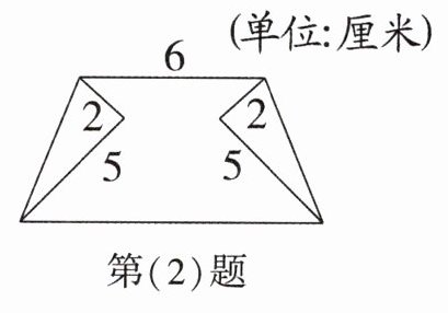 (3)一个梯形,上底为2厘米,下底为5厘米,把上底延长3厘米,就变成了一个(
