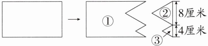 (2) 如图,在一张长20厘米、宽12厘米的长方形纸上剪去两个等边三角形②和③后,刚好剩下图形①,那么图形①的周长是(