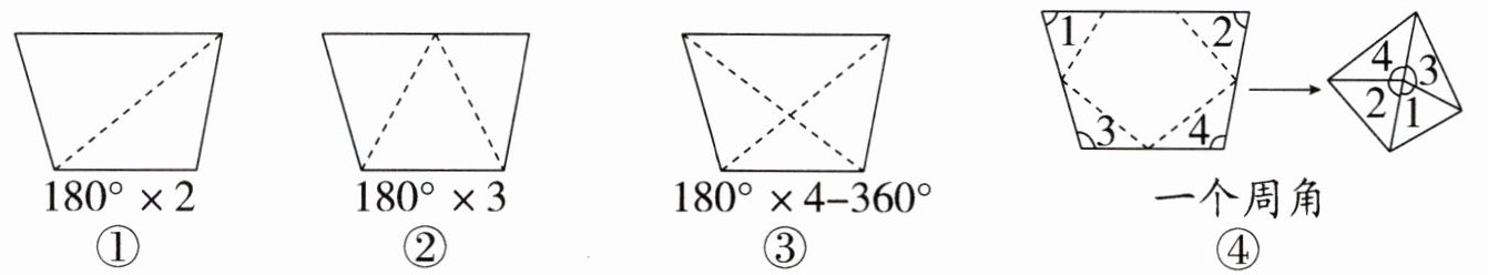 3. 评价说明 下面是四种探究四边形内角和的思考过程。