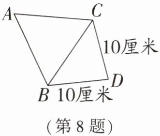 8. 如图,三角形ABC是等边三角形,三角形BCD是等腰三角形。三角形ABC的周长最大是(