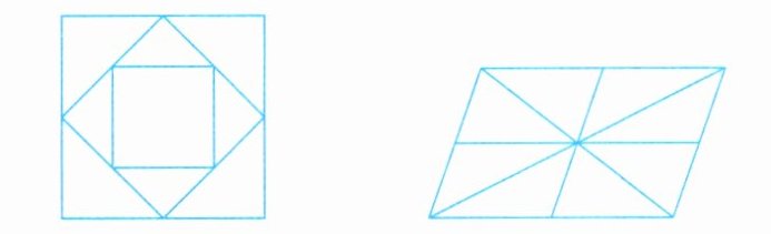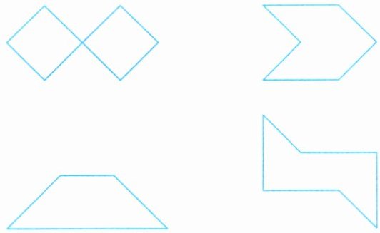 5. (操作探究)下面的图形都是由四个同样大的三角形拼成的,在图中用线把四个三角形画出来。