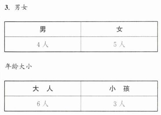 3. (社会生活)星期天,公园里有一些人。请你用两种不同的标准分一分,并用自己喜欢的方法表示出来。