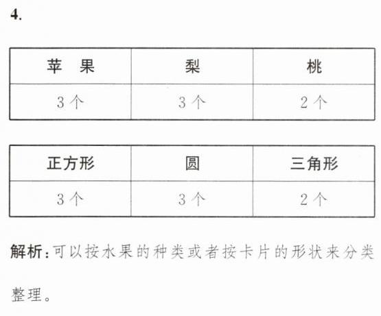 4. (思维过程)下面的卡片可以按不同的标准进行分类,请你设计表格并记录下来。