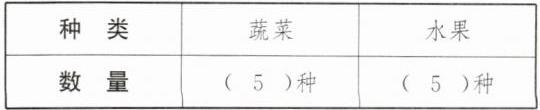 1. 先在水果的下面画“○”,在蔬菜的下面画“△”,再填一填。