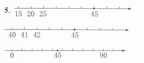 5. (数形结合)在下面三幅图中分别找到45,并用点标出来。