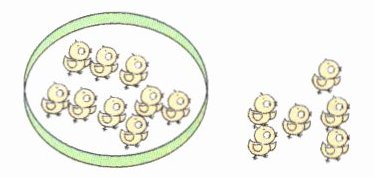 (1)圈里有()只鸡,圈外有()只鸡,一共有多少只鸡?