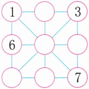 5. 在$◯$里填数,使每一横行、竖行、斜行三个数连加的结果都等于12。