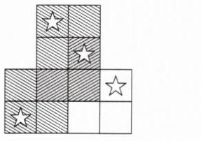 解析:仔细观察图形,一共有 12 个小正方形,要分割成形状相同、大小相等的 4 份,因为 12 = 3 + 3 + 3 + 3,所以每份有 3 个小正方形,再看每份里都要有
