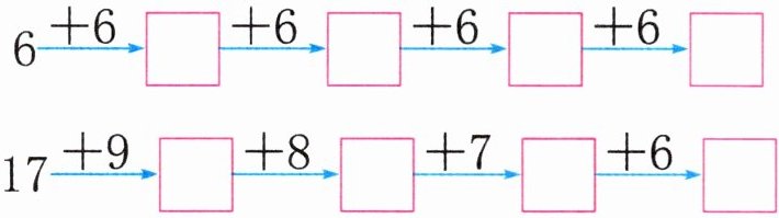 17$\xrightarrow{+9}$$□$$\xrightarrow{+8}$$□$$\xrightarrow{+7}$$□$$\xrightarrow{+6}$$□$