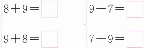 $\begin{matrix}\boxed{8 + 6} & \boxed{7 + 5} & \boxed{9 + 6} & \boxed{7 + 7} \\\boxed{7 + 6} & \boxed{8 + 7} & \boxed{9 + 9} & \boxed{8 + 5}\end{matrix}$