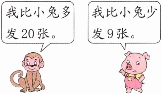 答案:3. 小猴:65+20=85(张) 小猪:65-9=56(张)