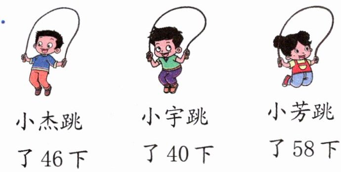 答案:2. (1) 40+58=98(下) (2) 46-40=6(下) (3) 58-40=18(下)
