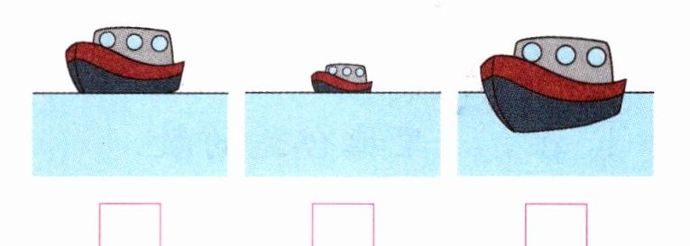4. (生活体验)小远在海边看见一艘船从远处开来,按时间顺序给下面的图片编号。