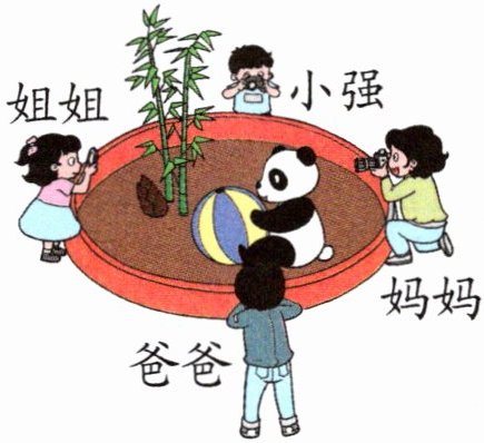 1. (社会生活)小强一家在森林野生动物园里给大熊猫拍照。