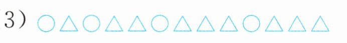 、○、△、△,每四个为一组排列。(3)○和△间隔排列,○每次都是1个,△依次多1个,所以接着的应该是△、○。