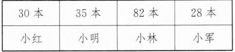 (8)(南通通州区)小军的课外书和小红差不多,小林的课外书比小红多得多,小明的课外书比小红多一些。他们各有多少本书?在合适的答案下面写上他们的名字。