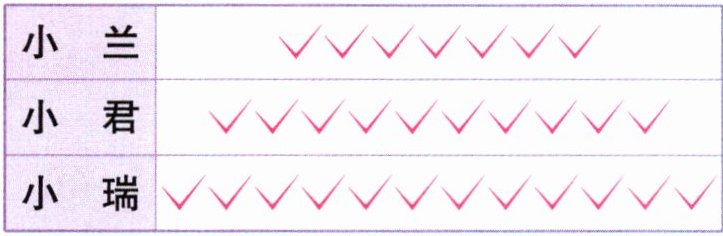 1. (泰州兴化)乐乐调查了3名同学读的课外书的数量情况,结果如下。(一个“√”表示1本)