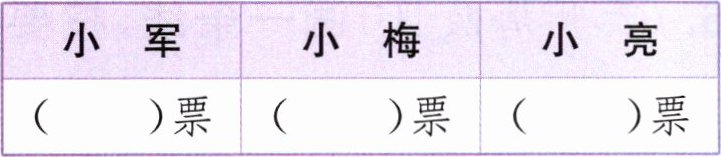 2. (淮安淮阴区)小敏记录了二年级投票评选“中华好少年”的情况。(每人只能投一票)