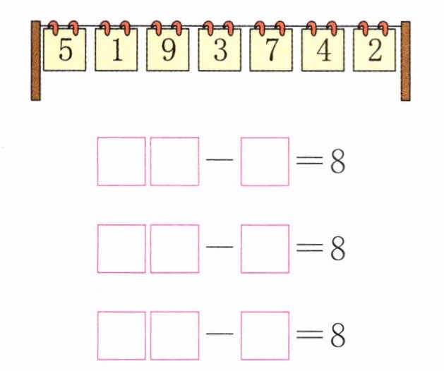 (3)(南通通州区)从下面的卡片中每次选三张,组成得数是 8 的减法算式。