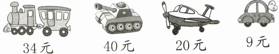 (3)答案不唯一,如买一辆玩具坦克和一架玩具飞机一共要花多少元 $40 + 20 = 60$(元)