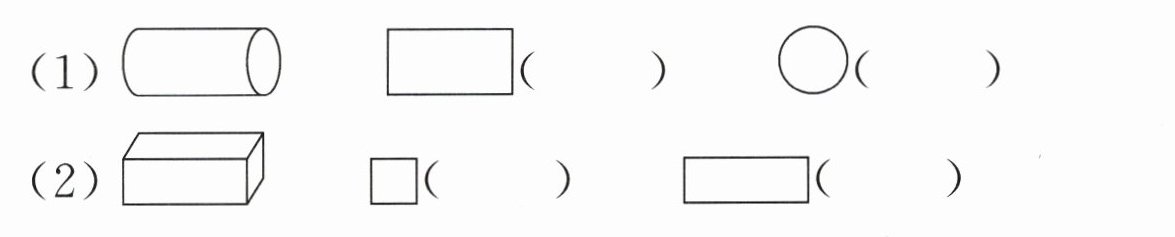 3. 下面的图形分别是从圆柱和长方体的哪个方向看到的?在(