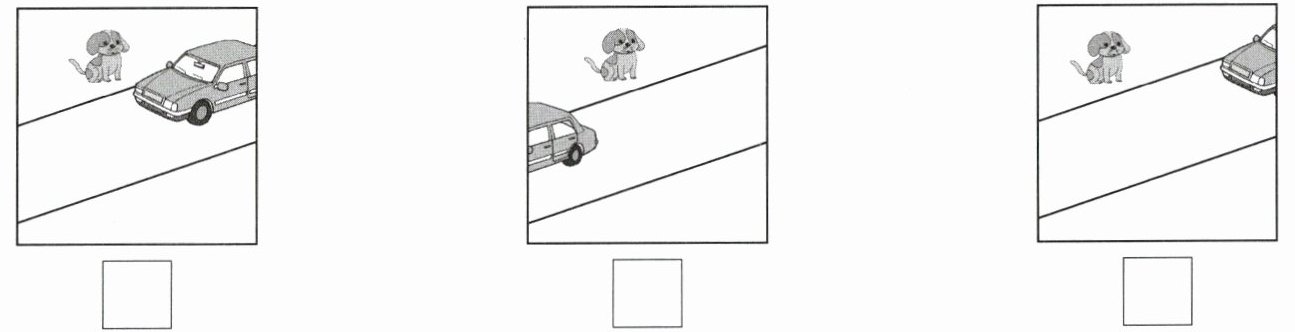 2. 一辆汽车从小狗面前驶过,给下面的图标上序号。