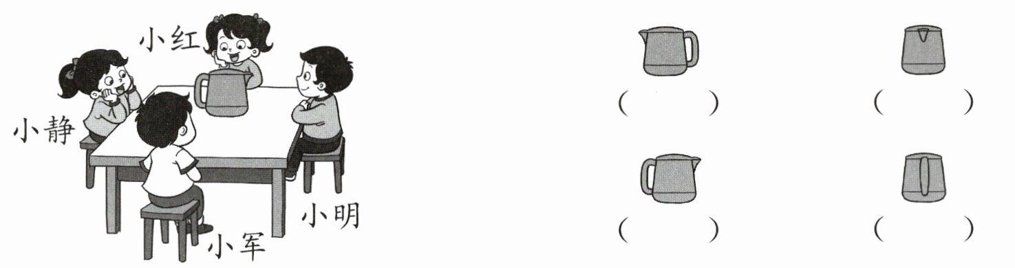 4. 下面的图分别是谁看到的?把名字写在(