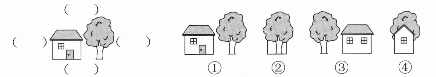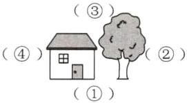 5. 下面的照片分别是在一处房屋周围的不同位置拍的,这些照片分别是在什么位置拍的?在()里填序号。(4 分)