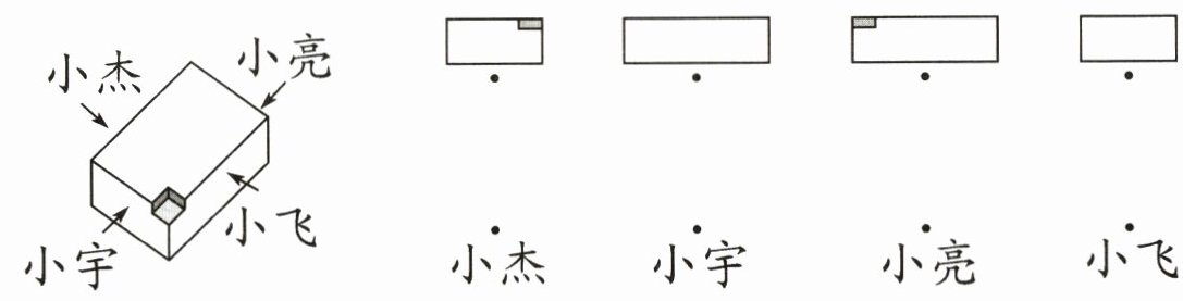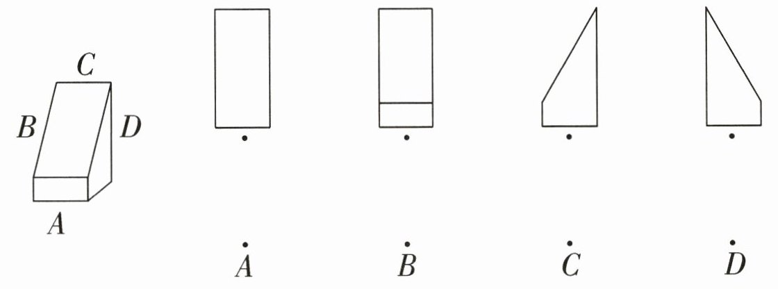 5. 在一块木料上挖去一小块,里面涂色,他们分别看到什么图形?(8 分)