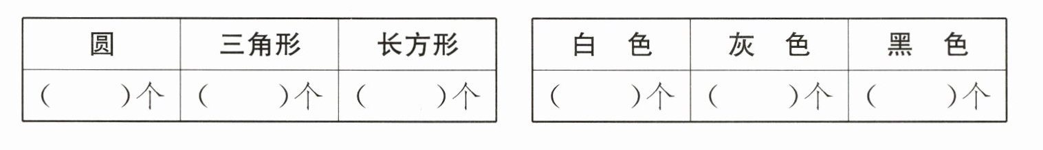(1) 分别按形状和颜色将上面的图形分一分。(6 分)