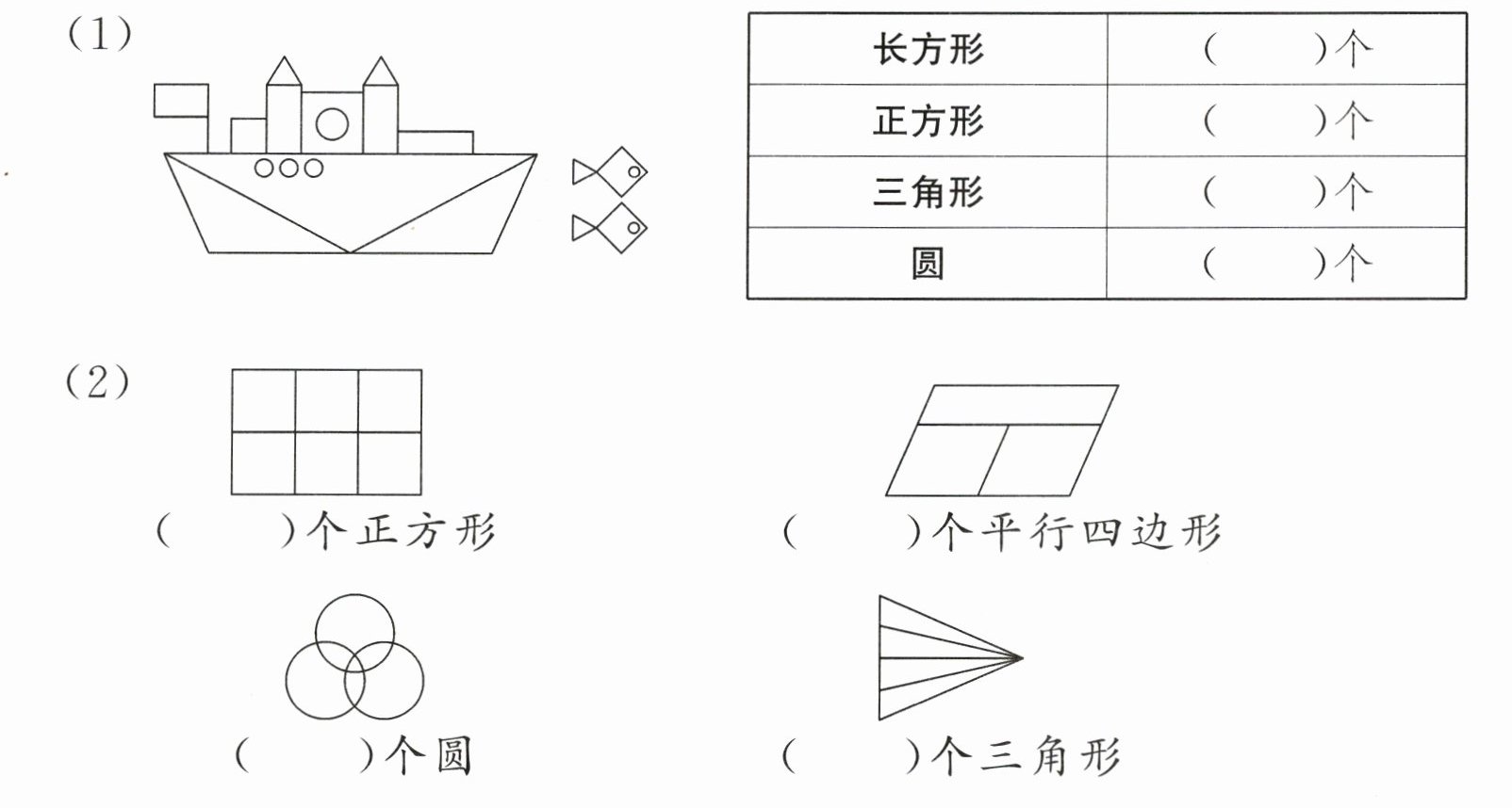 )个图形是长方形。答案:1. (1) 7 (2) 平行四边 5