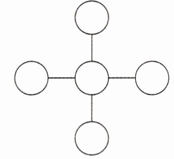 6. 把7,22,30,52,60分别填入右面的$◯$里,使每条线上3个数的和相等。