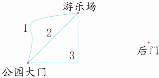 )最短。(2) 公园管理员准备从游乐场到后门再修一条路,怎样修最近?画一画。